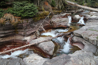 The trailhead is on the eastern side of the park, a few miles beyond Logan Pass. There’s a glacier overlook by the parking area. But, do to the smoke, you can't see the glacier from here.