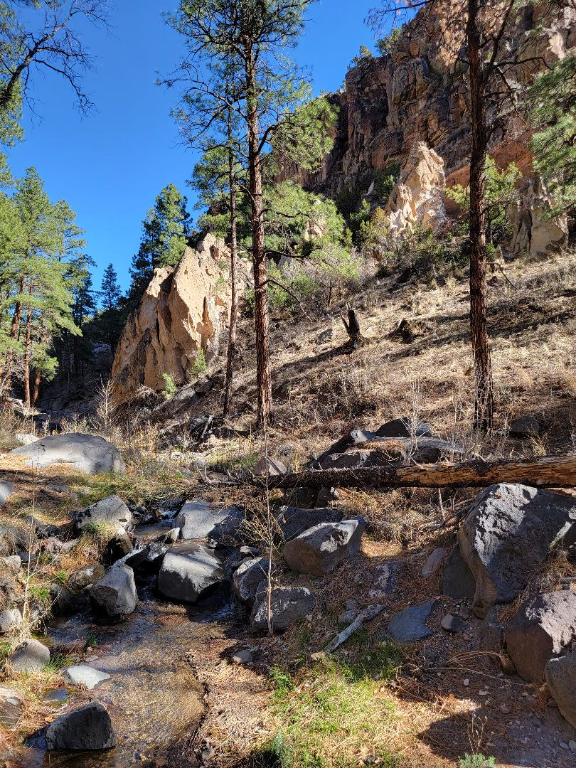 Eventually, I did find the parking area and trailhead for the Tsankawi Section of the park. There's a loop trail through the area that passes by some ruins, though there's not much to see. The view and challenges of the trail far made up for it.