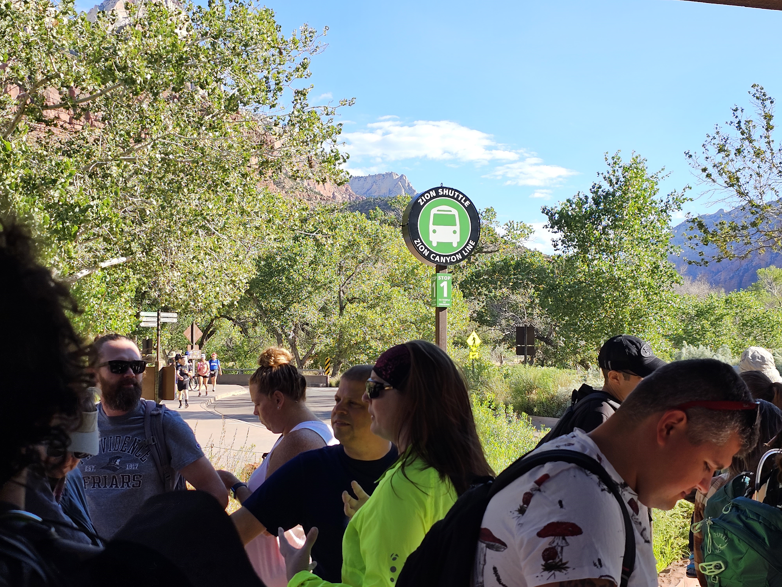 In hindsight, I should have done two things very differently today. First, get to Zion National Park extra early. Parking spots fill quickly. After circling the lot by the visitors center a few times, I gave up. It was clear no one was about to leave. Eventually, I did find a spot up the road at the museum. This meant taking the shuttle back to the visitor center, then waiting on line for the one headed the other direction. Second, if I had researched, I could have bought a waterproof case for my phone. More on that later.